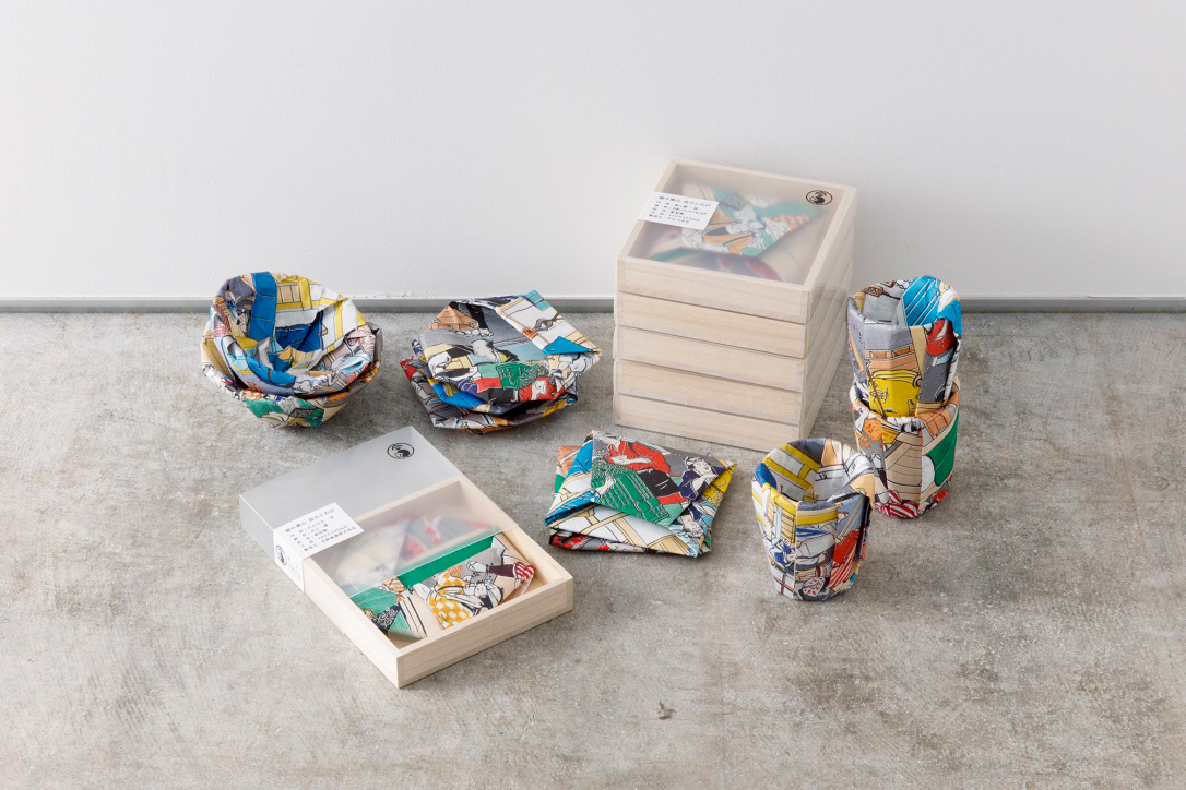 富山県のワザを統一小皿、ぐい飲みなどに絞り、パッケージにして販売。 「お土産としての工芸品」であることから、陶器市で新聞でくるんで渡されるようなイメージをベースに、包み紙でくるむだけのパッケージにしました。明治時代、工芸品を海外に送った際に緩衝材で浮世絵が使われていたことが、ジャポニスムの起源であった逸話をオマージュしました。 台湾ゴールデンピンアワード ベストオブデザイン賞/富山ADC賞/富山県デザイン展 優秀賞 AD:羽田純 I:佐藤義隆 CD:山田遊 ADV:富山県総合デザインセンター